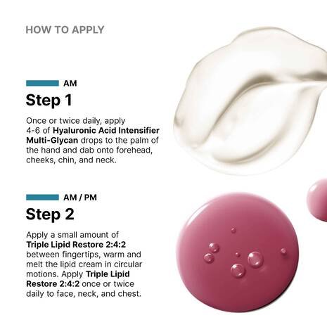This radiant skin duo features the best sellers Triple Lipid Restore 2:4:2 and Hyaluronic Acid Intensifier Multi-Glycan. Triple Lipid Restore 2:4:2 is an anti-aging cream with a patented lipid ratio of 2% pure ceramides 1 and 3, 4% natural cholesterol, and 2% fatty acids, scientifically proven to nourish skin and correct signs of aging. This unique moisturizer restores the skin’s external barrier while enhancing the visible smoothness, refining pores, and boosting overall radiance. Hyaluronic Acid Intensifier Multi-Glycan is a next-generation corrective serum proven to increase the skin’s own hyaluronic acid levels by 30 percent. This volumizing serum instantly plumps and rehydrates skin for up to 24 hours.